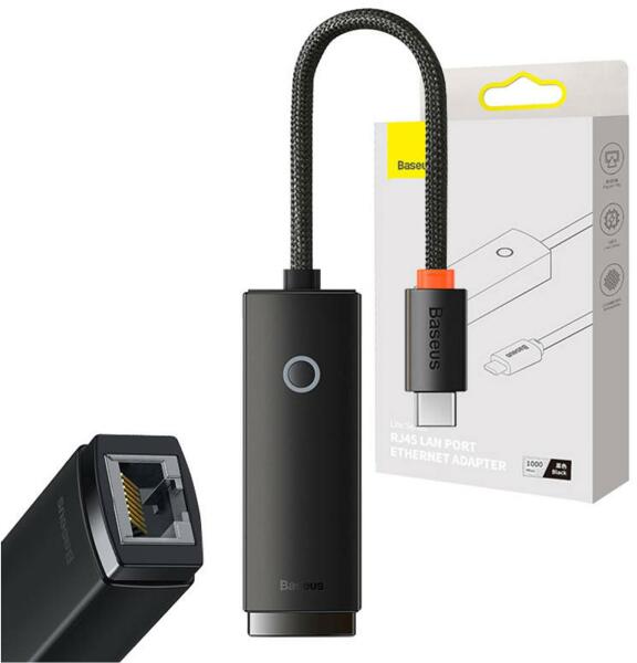 Baseus ADAPTOR RETEA Baseus Lite, USB Type-C to RJ-45 Gigabit LAN, LED, negru WKQX000301 (include TV 0.18lei) - 6932172606114 (WKQX000301)