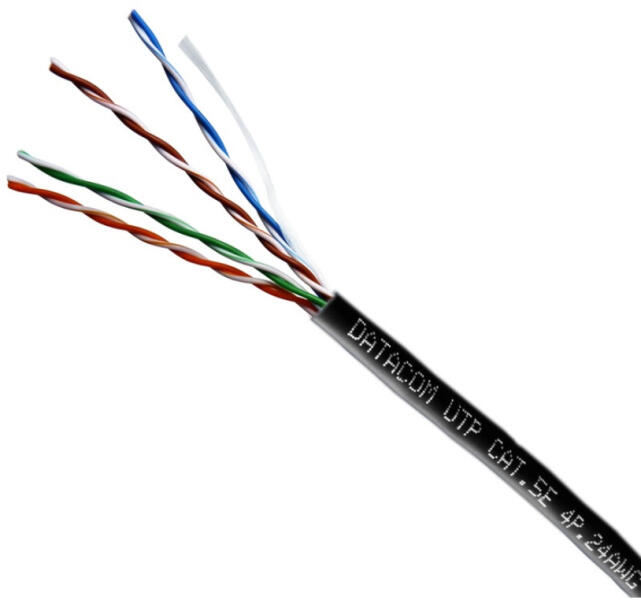 DATACOM Cablu UTP Cat5e 305m OUTDOORCablul de instalare DATACOM este special conceput pentru utilizare în exterior. Construcția sa robustă și materialele durabile garantează o rezistență ridicată la condiții meteorologice nefavorabile. Specificații tehnice:Tipul conductorului: sârmăCategorie: cat. 5eStructură: 4 x 2 x 0,5 cupru masivDimensiunea conductorului: 24 AWGPneu: PELungime: 305 mDimensiuni: 36 x 21 x 36 cmCuloare: negruTemperatura de funcționare: -20 până la 70 grade CelsiusProduse conexe:Plug 8p8c RJ45 cat. 5e sârmă - pachet de 100 buc. Priză unică UTP deasupra tencuielii - 1 x RJ 45